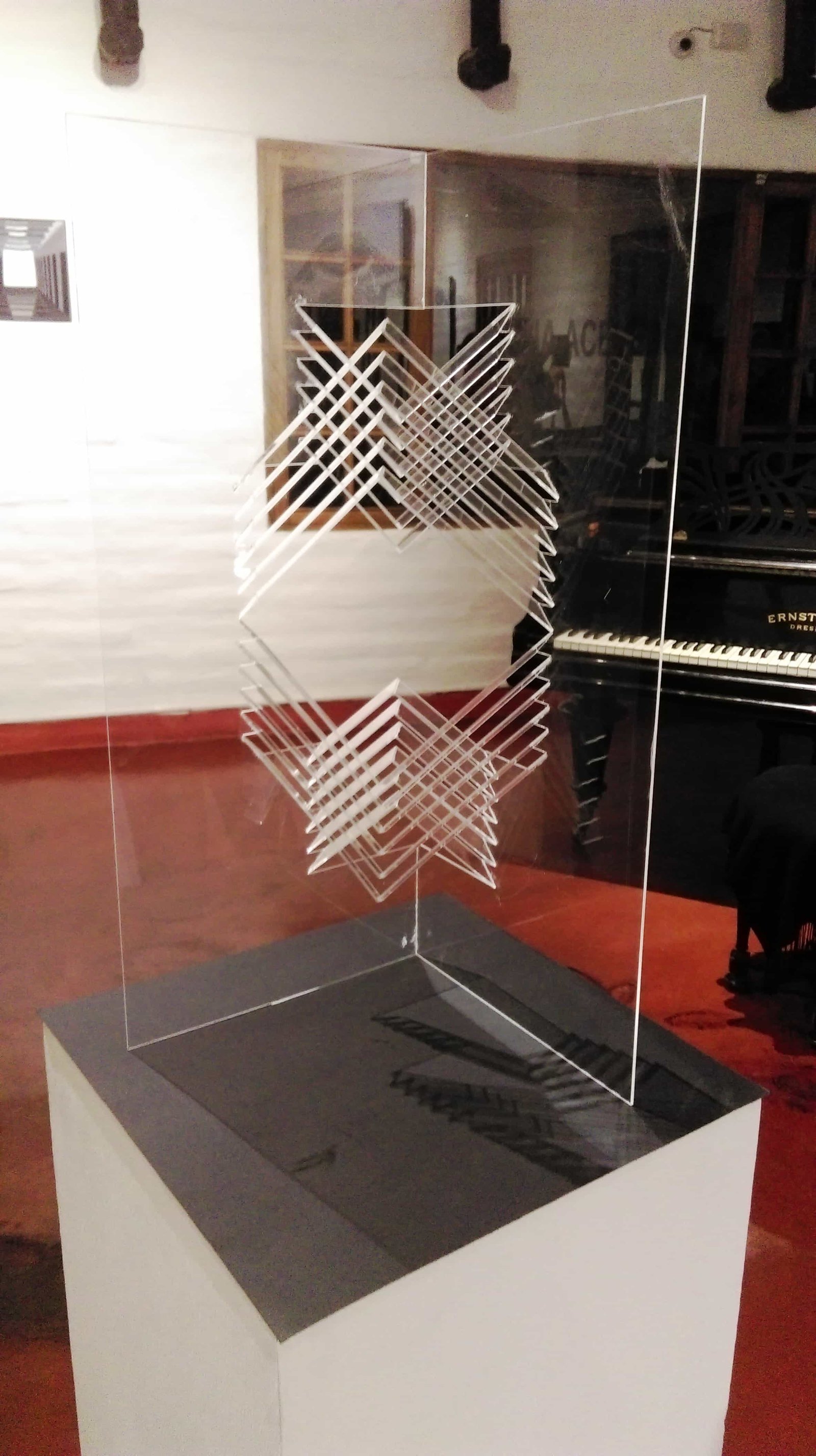Her continuous exploration of ways to relate her majors, art and architecture, led her to achieve it during her thesis project where the architectural quality of her works was reflected; finding a path in which she was able to express herself through art.