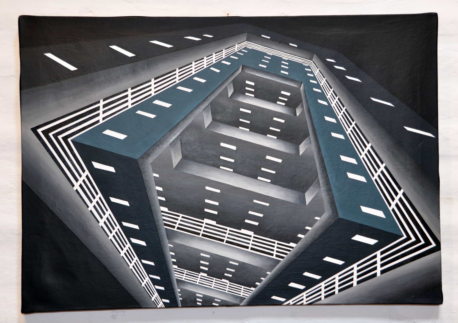 Through architecture I understand how we approach linear and depth elements, which always have a certain utilitarian function. With art, however, I imagine the space and generate a breach of the architectural scheme that makes it impossible to leave the limits and structure. Buildings, houses, streets and roads are part of our daily life; therefore, through the intervention of them; I propose to create a common, but transformed image of the space, leading the observer to a place where he can associate with the composition.