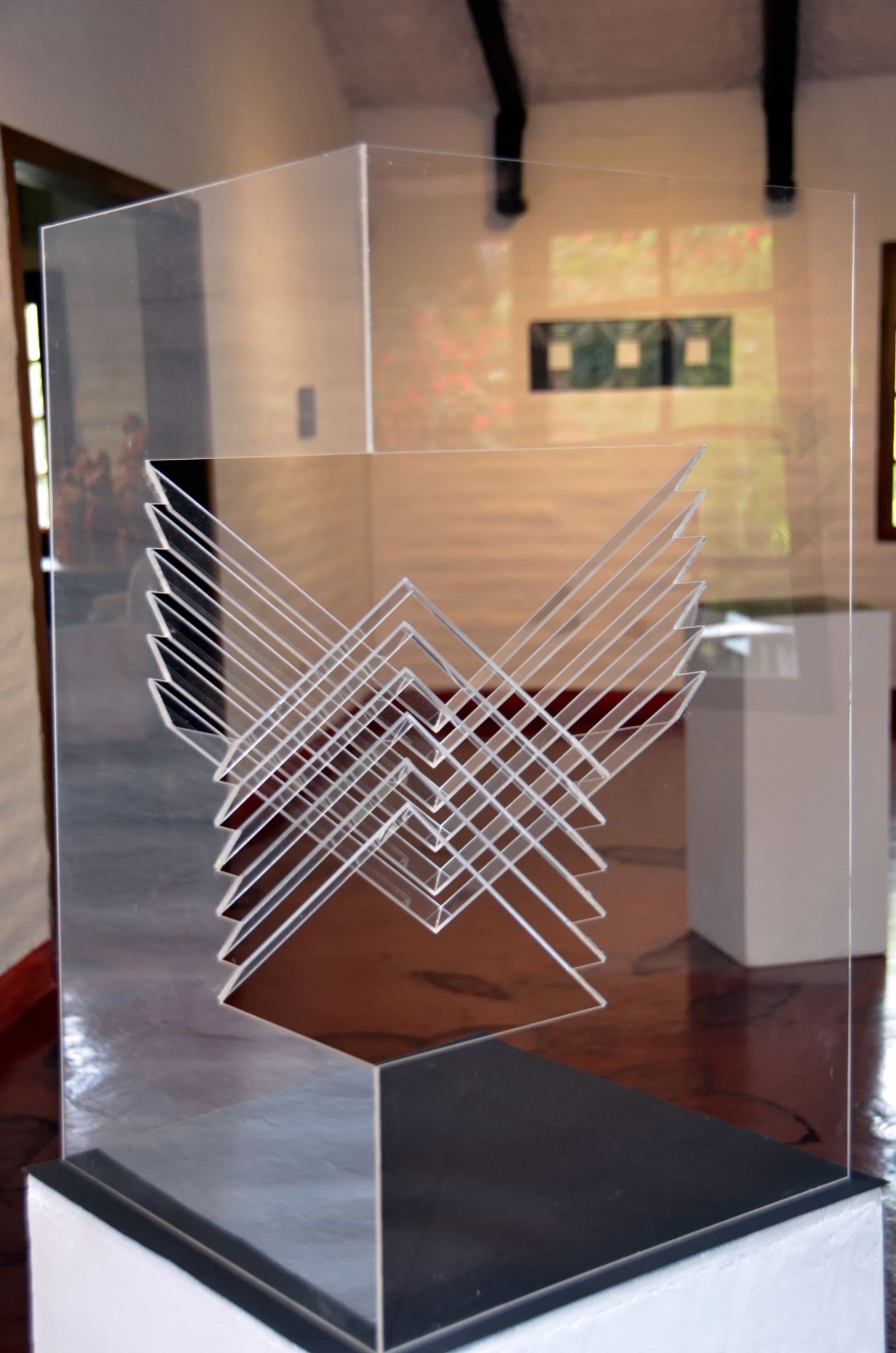 Her art consist on paintings and sculptures with geometrical qualities that represent the interaction between architectural design and the aesthetics of the art.