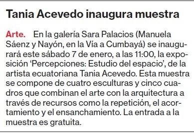 - Diario El Comercio, Tania Acevedo inaugura muestra (2017)